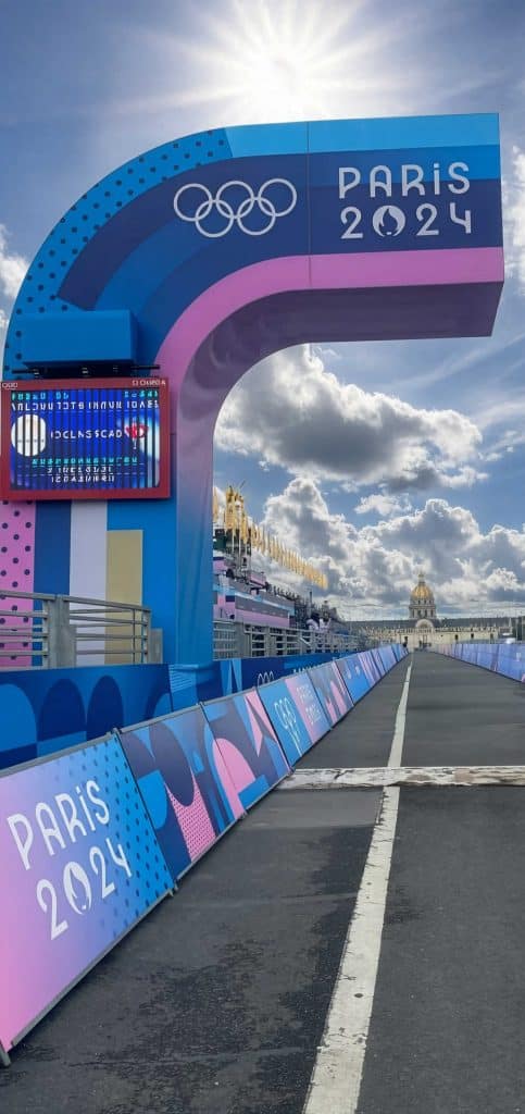 Paris 2024 Olympics & Paralympics: Venue dressing, bilingual wayfinding, and sponsor-branded installations.
